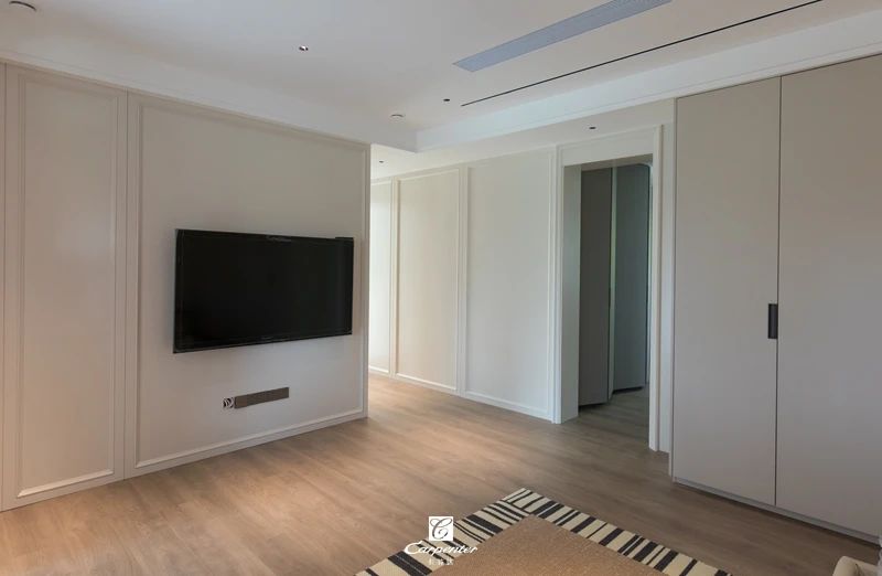 背景牆采(cǎi)用可(kě)可蛋奶色混油護(hù)牆板